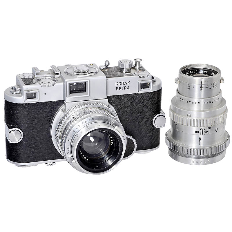 With Kodak Ektar 1,9/50 mm, no. EY1580, with cap. Add-on: Kodak Television Ektanon Lens 3,5/90 mm, focusing inoperative.– (3+/3)