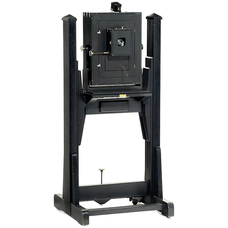nickel fittings, transport mechanism by crank. Lens Schneider Xenar 3,5/10,5 cm. Original studio stand.