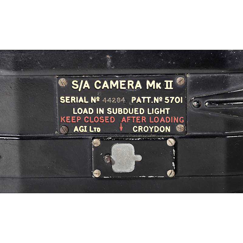 Agi Ltd., England. Presumably aerial camera, SLR type, size 6 x 6 cm on rollfilm, focal plane shutter 1/25 – 1/500 sec. (stuck),