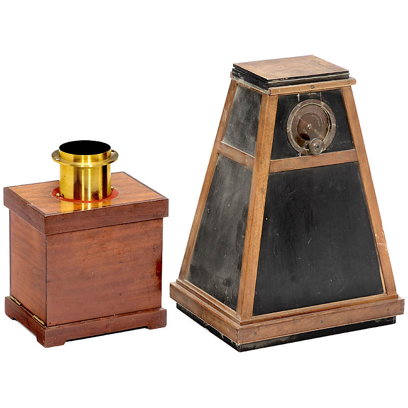 2) Unmarked, presumably England, size 4 x 6 cm on 11 x 17 cm, brass tube with lens.– (3–2/3–2)