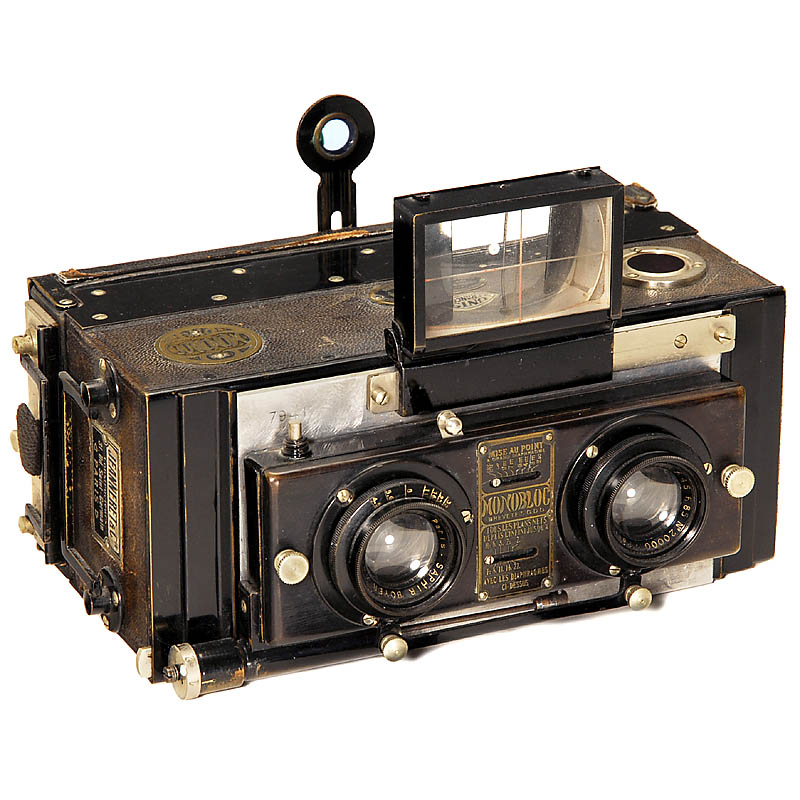Jeanneret, Paris. Nr. 7941, the larger model for exposures 6 x 13 cm, lenses: 2 x Saphir Boyer 4,5/8,5 cm on