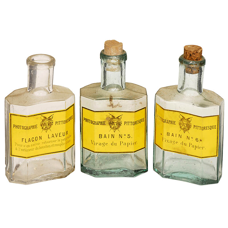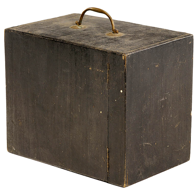 Set of early wet-plate camera (size 4 x 6 in.) and box with chemicals and glass plates, both with a beautifully designed label "Photo Magie".