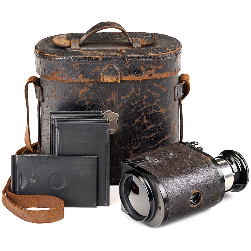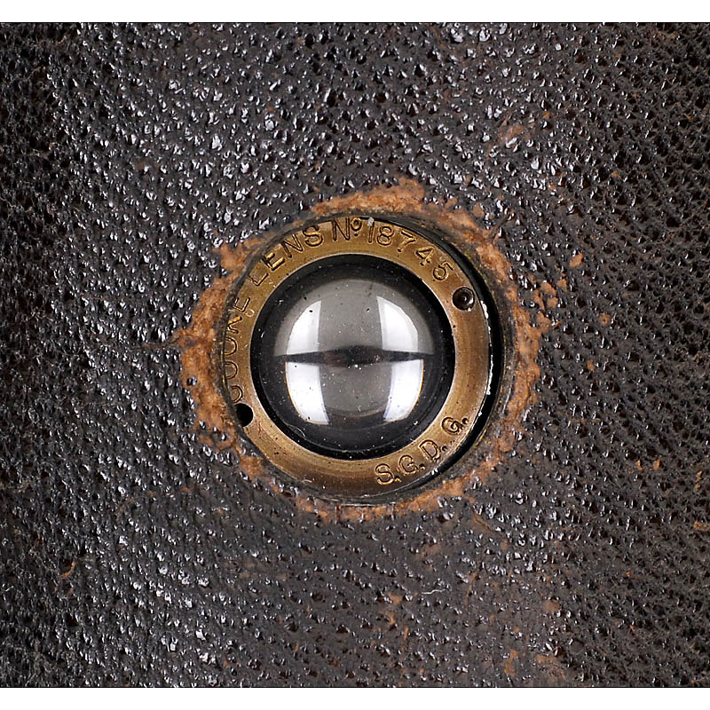 Bloch, Paris. No. 1136, plate size 4,5 x 6 cm, with early "Cooke Lens", no. 16745. Very rare detective camera,