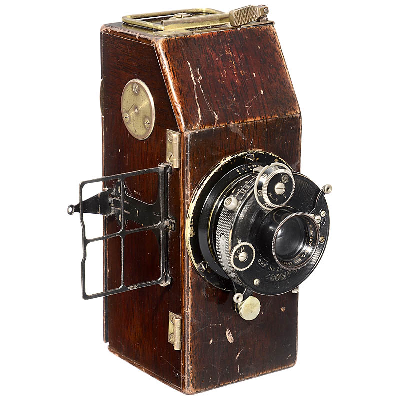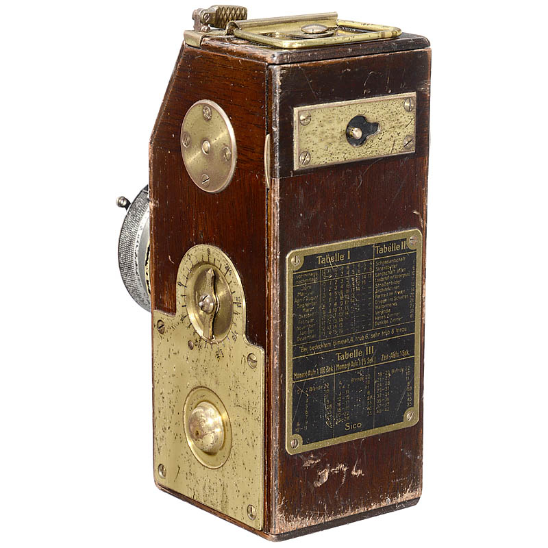 Wolfgang Simons & Co., Bern/Switzerland. Excellent pre-Leica 35 mm camera, mahogany wooden body,