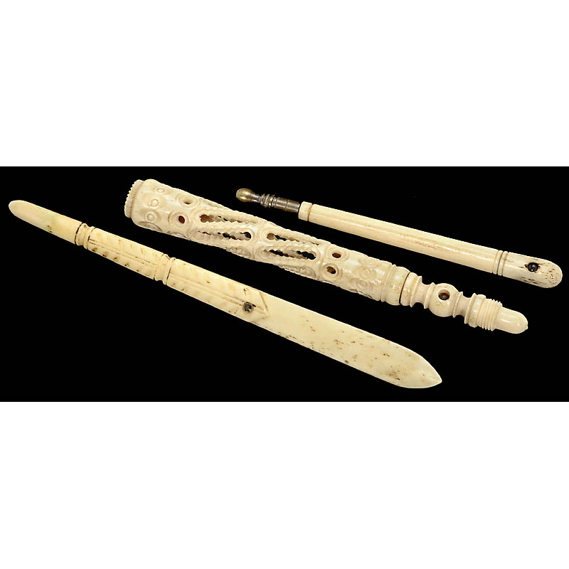 2 stanhope quill pens and 1 paper knife with stanhope.