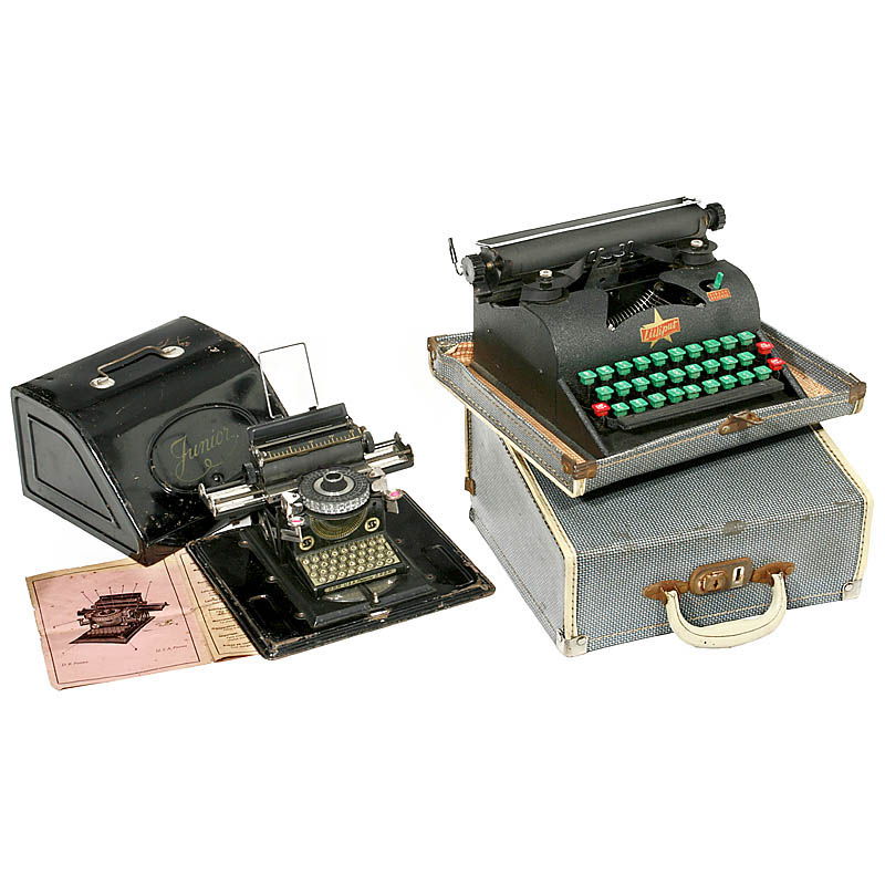 1) "GSN Junior", c. 1925. Manufacturer: Schmidt Brothers, Stein/Nuremberg, Germany, with original tin base and cover and instruction manual.