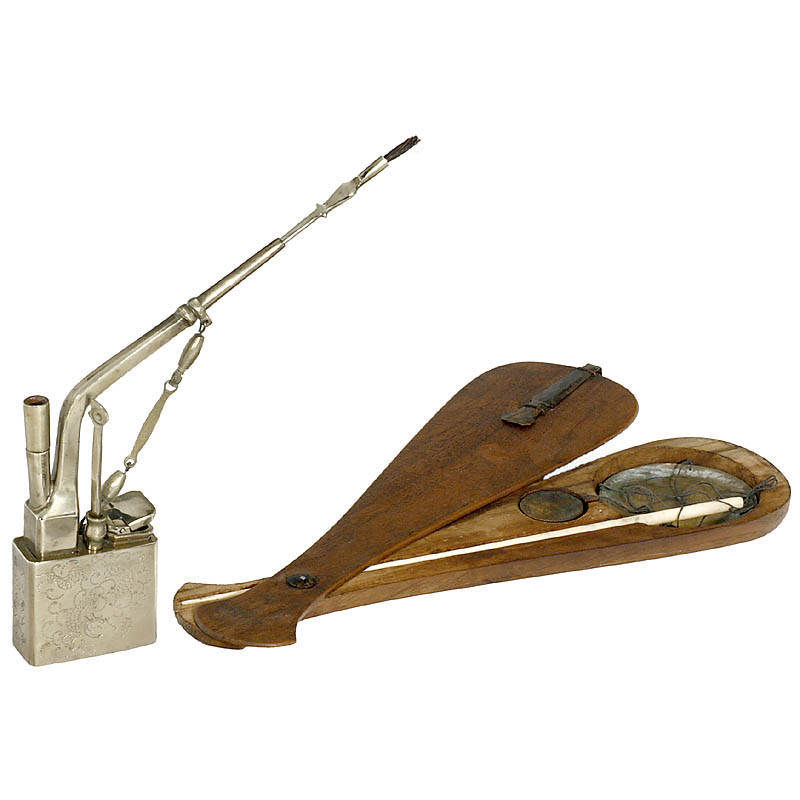 1) Opium pipe, nickeled-brass.