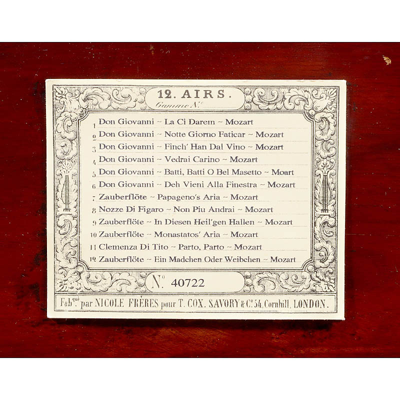 ‘Nicole Frères’音乐盒带莫扎特曲目 约1865年