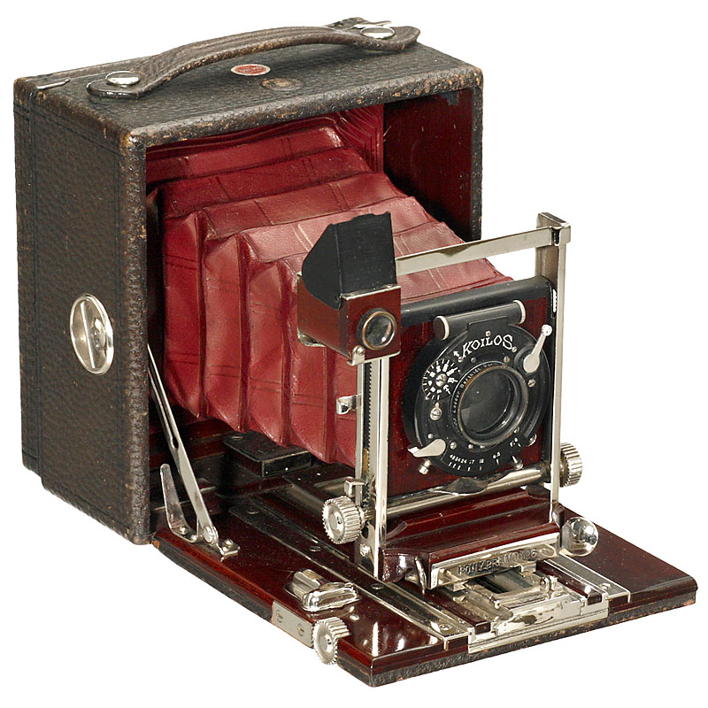 Eastman Kodak, Rochester. "The Premo Camera", for 4 x 5 in. plates, nice leather-covered polished wood body, lens: Berthiot, Paris "Eurygraphe Anast. No. 6 F:6 F=135 mm" in Koilos shutter, focusing screen back and cassette. – Very attractive plate camera!