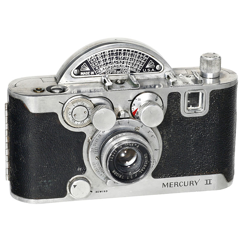 Universal Camera, New York. Half-format camera, Tricor 2,7/35 mm, rotary shutter (reluctant). Very unusual design!