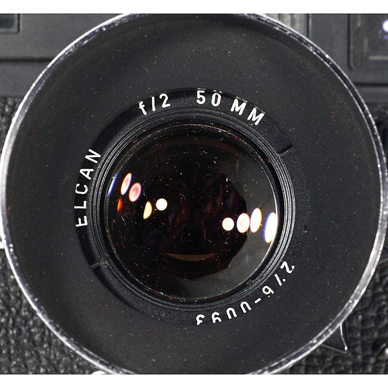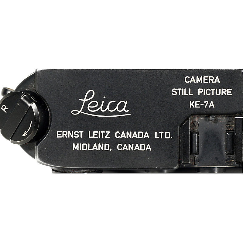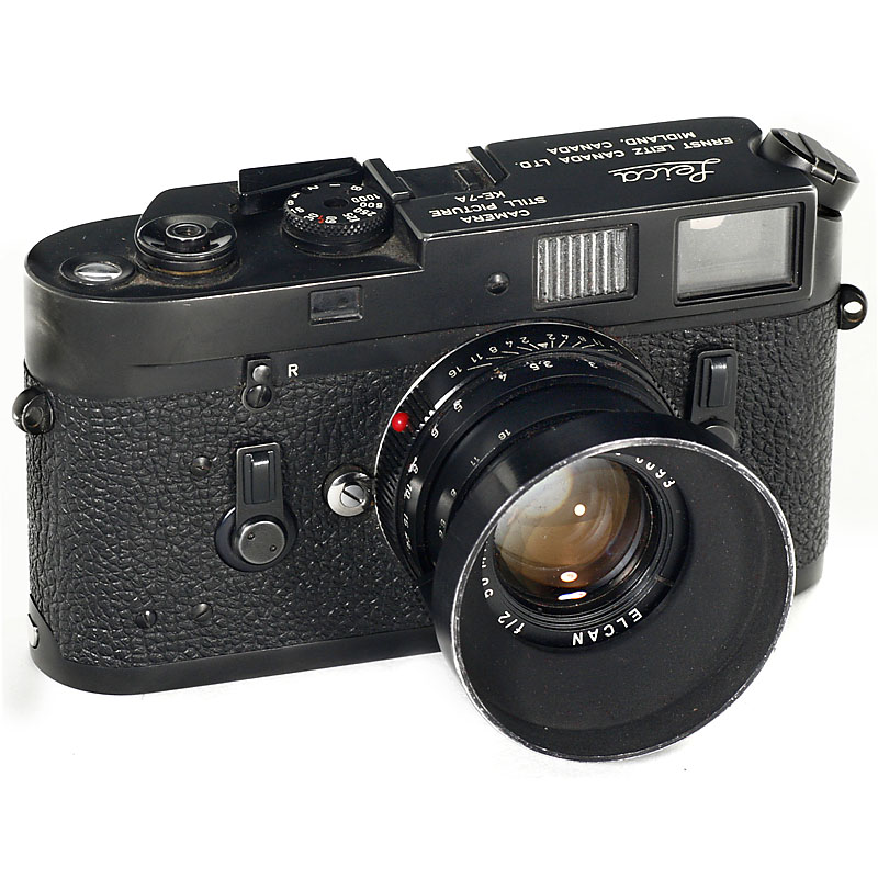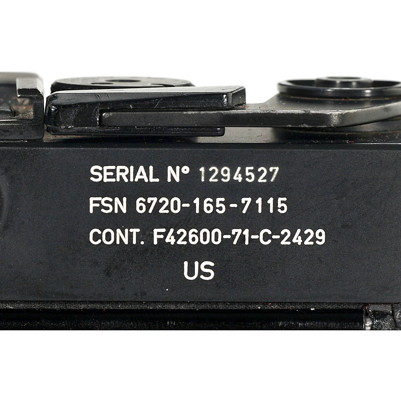 Leitz, Midland, Canada. Serial no. 1294527. "Contract" no. F 42600-71-C-2429, FSN 6720-165-7115. Very rare black M4, produced for the U.S. Army. With Elcan 2/50 mm, no. 276-0093, lens hood C42-LS39F (stuck on the lens) and original case with military engraving. – Rarity!