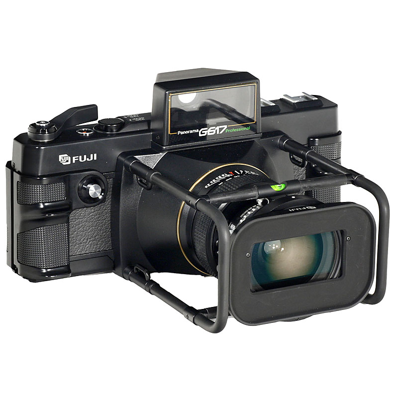 Fujifilm, Japan. No. 8031950, size 6 x 17 cm, on rollfilm type 120/220, Fujinon-SW 8/105 mm in Seiko shutter. With center spot filter and original case. – Top condition!