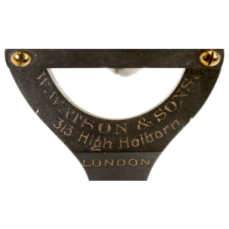 Signed "W. Watson & Sons, 313 High Holborn, London", serial no. 4093, originally lacquered brass, 2 x coarse and 1 x fine adjustment, circular stage, condenser, double mirror, height: 14 1/5in., with accessories in mahogany case.