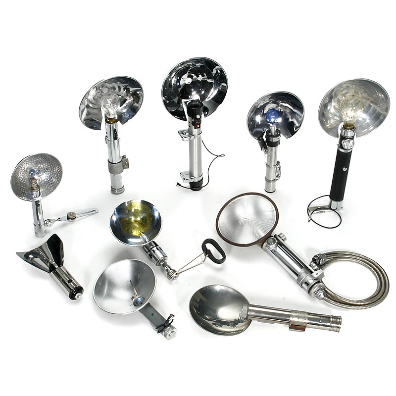 10)Graflex, extension flash unit with clamp. – Some with flash bulbs and flash cables, all untested.