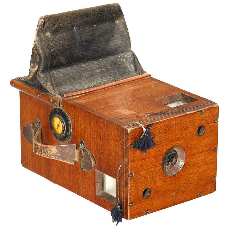 Hüttig, Dresden. For 12 plates, size 3 ½ x 4 ¾ in., body no. 15950, lens: Rapid Aplanat, guillotine shutter (working).