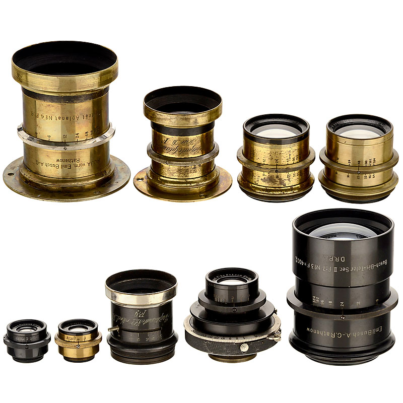 9) Glyptar-Anastigmat 3,5/7,5 cm.– Attractive group of "Busch" lenses!