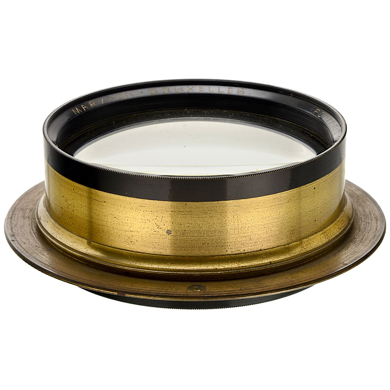 Oskar Zwierzina, Dresden for "Marynen, Bruxelles". No. 18723, series B, achromatic portrait brass-bound lens with original yellow filter and connecting ring, in excellent condition, height of the lens 2 in., Ø 4 ⅓in. – Rare lens!