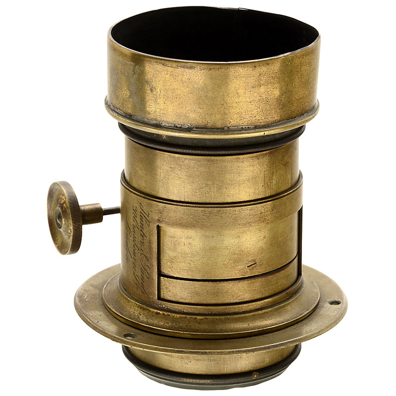 Hunter & Sands, London. For waterhouse stop, rackand-pinion focusing, height of the lens with lens hood