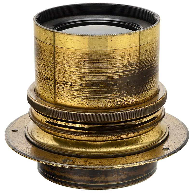 Lacour Berthiot, Paris. No. 34490, focal length 790 mm, iris stop, height of the lens 5 ½ in., Ø 4 ⅓in., with connecting ring, glass with small stains.
