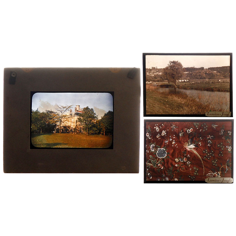 4 "Lumière" autochromes and 3 other autochrome plates. Size: 1 plate 4 x 5 in., 6 plates 5 x 7 in. Portraits and landscape photographs. Excellent condition, sought-after!