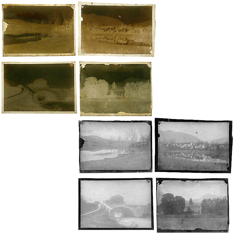 Paper negatives, sizes: 1 negative 6 ¼ x 9 in. (handcolored!) and 16 negatives 4 ¾ x 6 ¾ in., landscape and building photographs. – Very early negative process by the legendary natural scientist William Henry Fox Talbot (1800–1877).