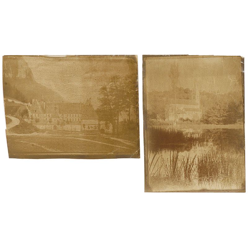 Size: 5 x 6 ¾ in., anonymous, landscape and building photographs. – Very rare positive process.