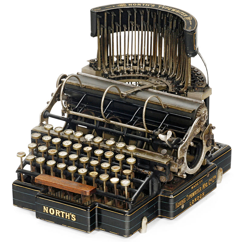 One of the great collector's items, only a very few are known worldwide. This is one of the only four typewriter designs with the typebar behind the platen for visible writing. The other three are: Waverley, Brooks and Fitch. – Serial no. 1326. – With original tin cover. – Literature:Martin, 1949, p. 133. – Highly desirable rare collector's item and spectacular exhibition piece in just excellent all original condition!