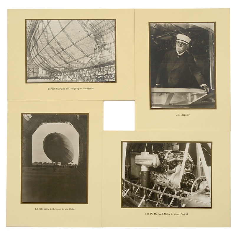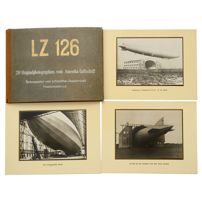 Published by the factory "Luftschiffbau Zeppelin GmbH", 1 text page, 20 photos mounted on cardboard (9 x 5 in.), in folder.