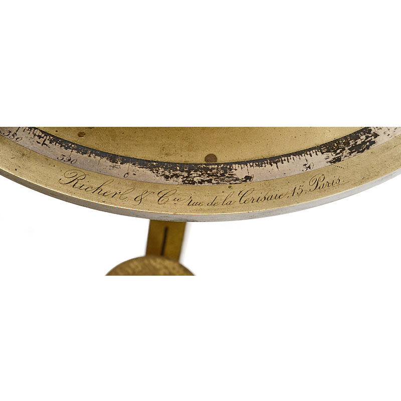 Engraved "Richer & Cie, Rue de la Cerissie 15, Paris", original lacquered brass, silver scales, 2 levels, 3 magnifiers, length of the telescope 11 ¾ in., in oak case.
