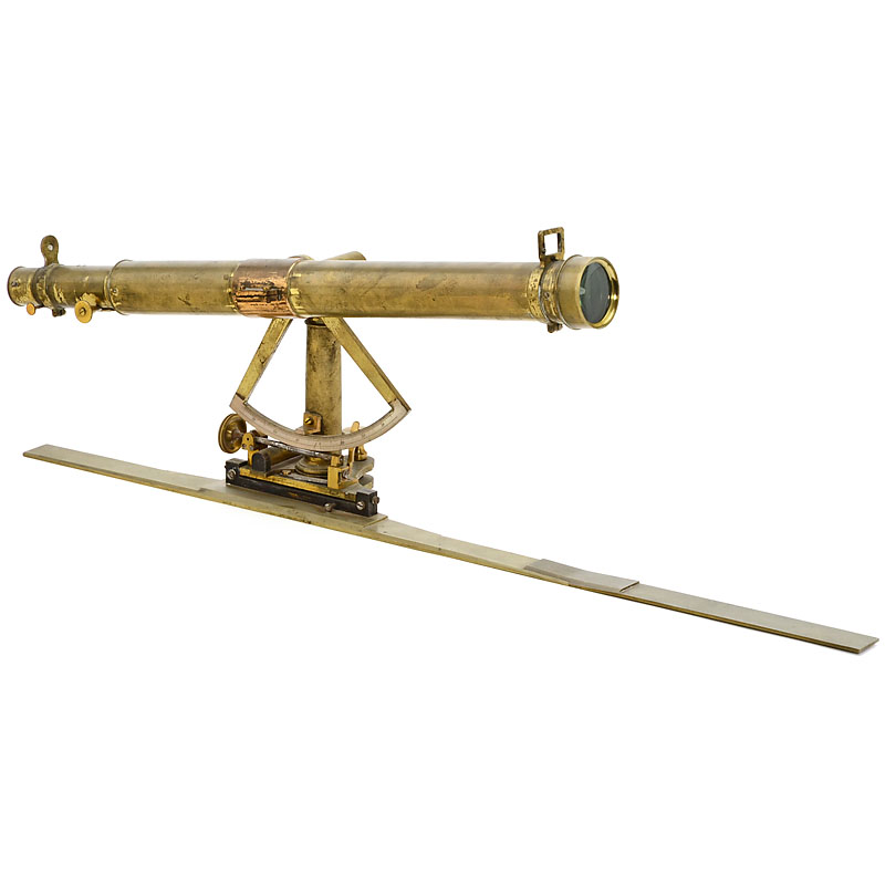 Munich, Fraunhofer laboratory, unsigned, original lacquered brass, rack-and-pinion and quick adjustment, silvered scale, length of the telescope 19 ¾ in., overall length 27 ¼ in.