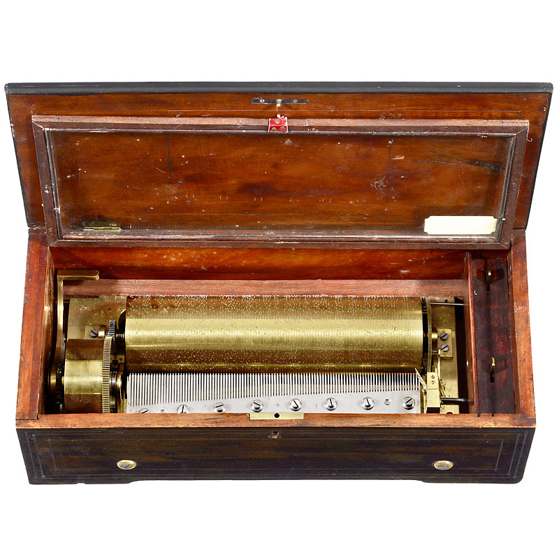 with some old filled losses from lid inlay. A wellarranged musical box in good playing condition!–