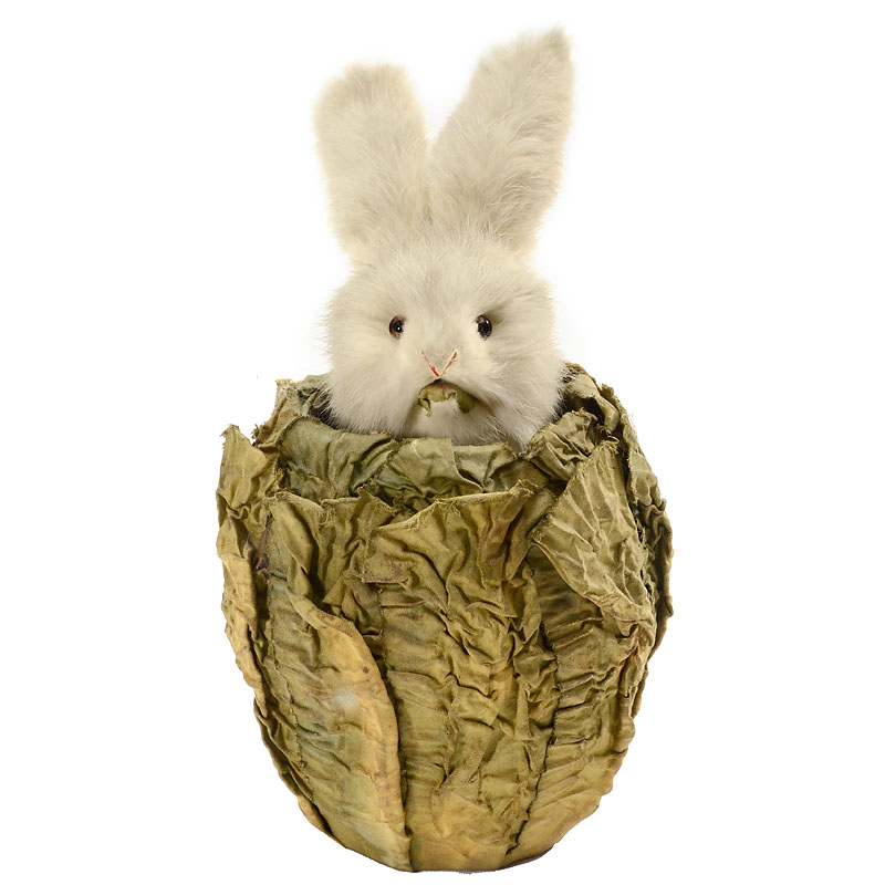 mouth, in papier-mâché cabbage with ruffled fabric