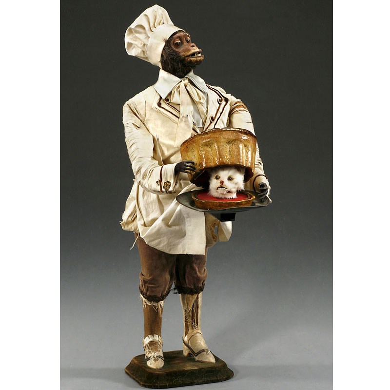 "Automata, the Golden Age", p. 128. Catalogue illustration p. 288. – The chef cooking a cat was a popular