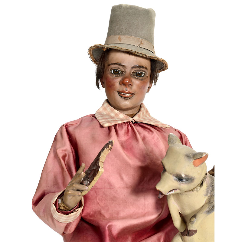movement. Height 31 ½ in. (80 cm) including hat, leather split on eyelids and lower lips, with "acorn"