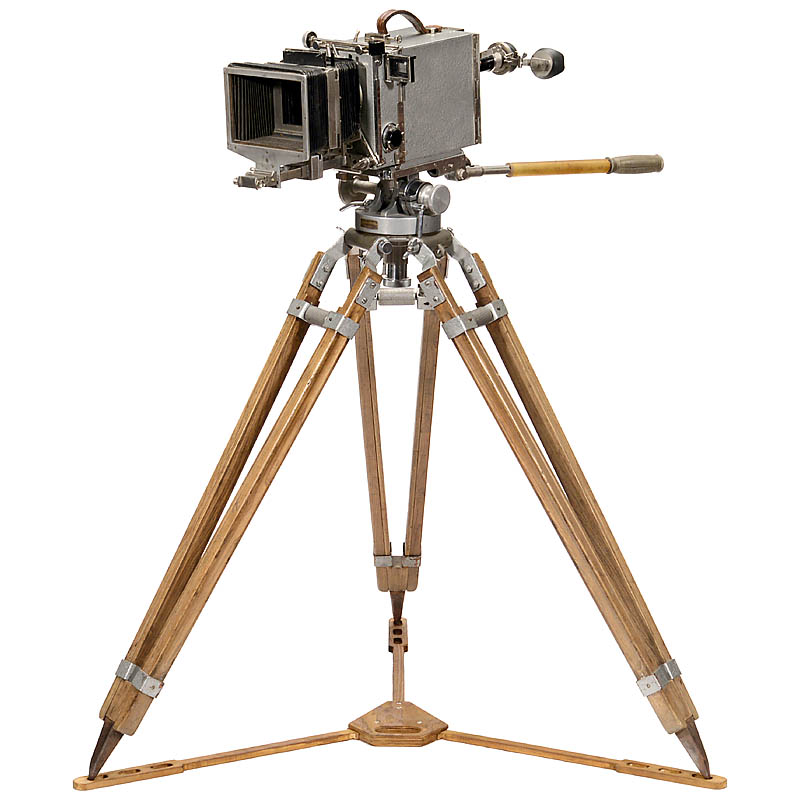 Bamberg-Werk, Berlin. Professional 35mm movie camera, 120m film cassettes, handcrank drive or electric motor drive (motor by Schneider & Munzke, Dresden). Lens: Pan Tachar 2,3/28 mm, with viewfinder magnifier in the camera or Newton viewfinder outside. Or