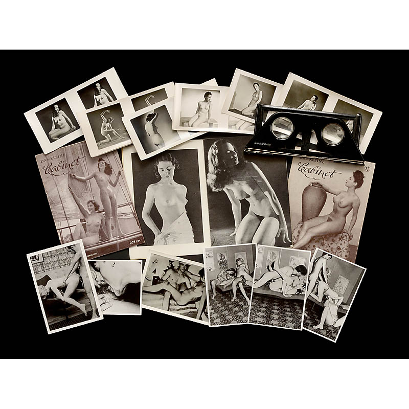 8 stereo nude photographs (6 x 13 cm) by "Martin's Kunstmappen". – And: 7 nude photographs and 3 brochures with nude photographs ("Das kleine Cabinet" no. 9 and 10, "Harmonie", no. 6).