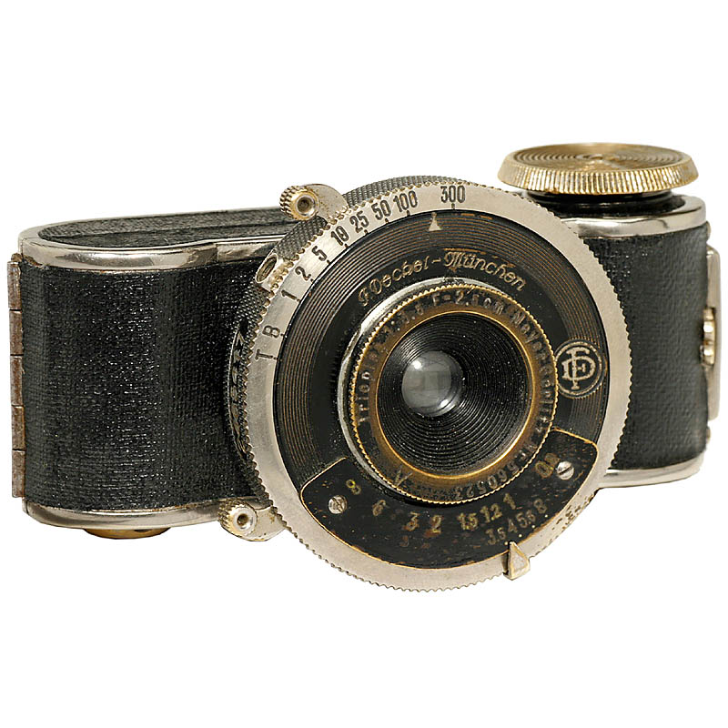Foto-Fex/Fritz Kaftanski, Berlin. Subminiature camera with "large" Compur-00 shutter, Meyer Görlitz Trioplan 3,5/2,5 cm. Finder missing.