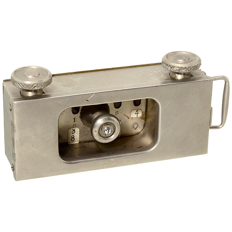 Manufacturer unknown. Neat magazine, using rollfilm 127, for stereo cameras with size 45 x 107 mm.