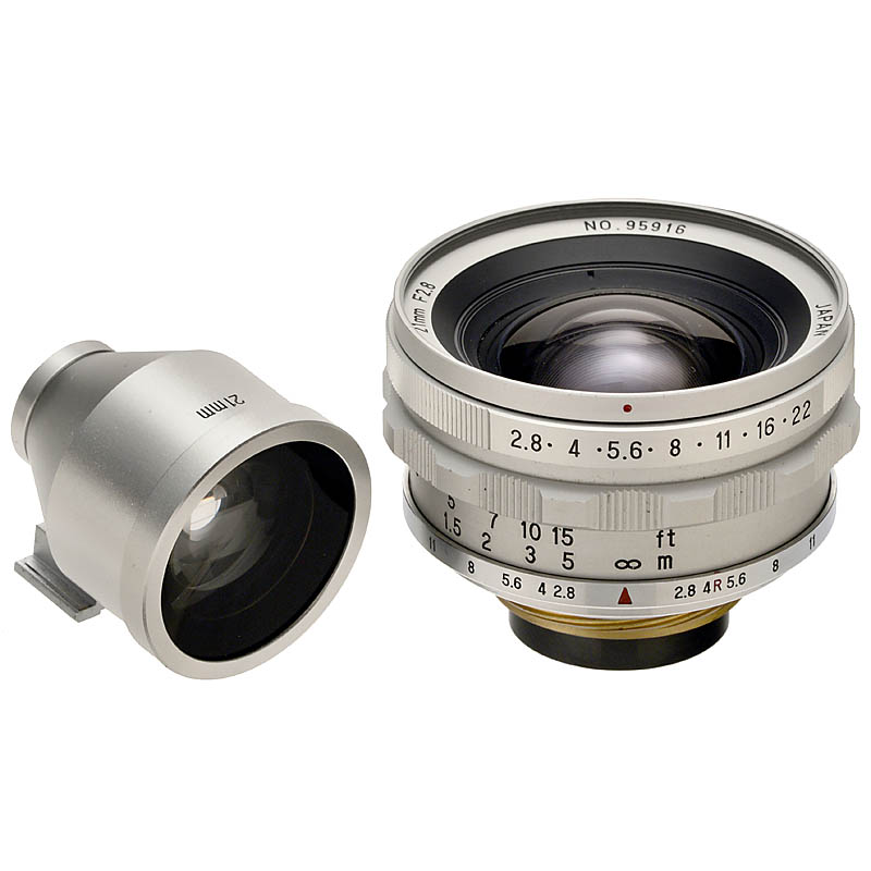 Japan made 21mm super wide lens for screw-mount Leica. Lens and finder in high quality and excellent design. – Literature: "Viewfinder", No. 4, 1995. – Like new!