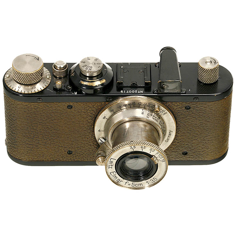 Leitz, Wetzlar. No. 200719, black/nickel. With Elmar 3,5/5 cm, nickel, feet scale.