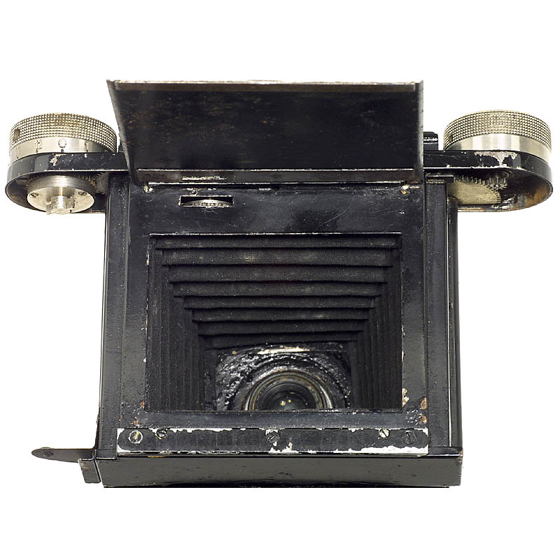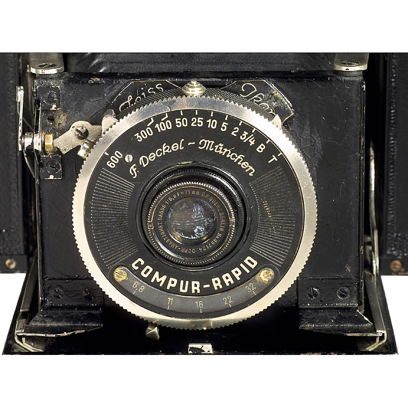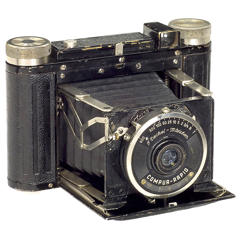 For 4,5 x 6 cm, Zeiss Ikon, strut folding camera, coupled rangefinder (CRF). The extraordinary specialty is the Compur-Rapid shutter with the fastest speed of 1/600 sec. Compur-Rapid had been produced regularly up to 1/500 sec. only! Tests have been done