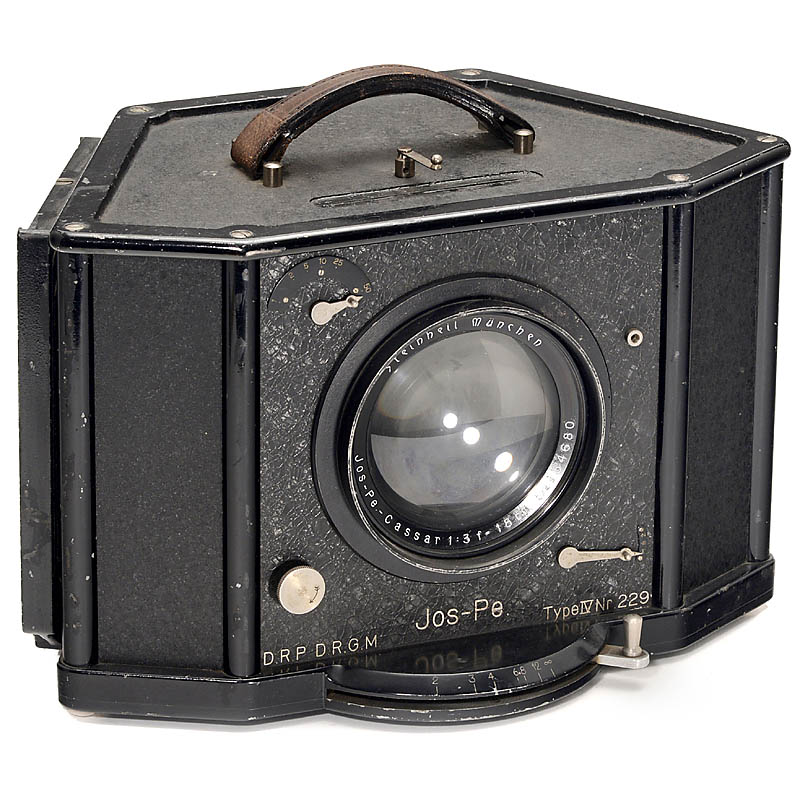 Josef Peter Welker, Hamburg. All-metal camera for single-shot 3-color separation negatives, decisive components produced by Steinheil and Zeiss, size 9 x 12 cm, Cassar 1:3/18 cm, compound shutter (works!), with 2 filters (yellow and red).