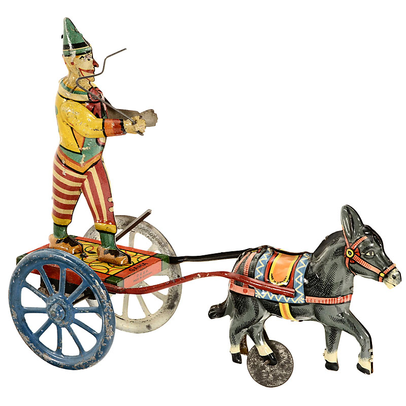 Georg Adam Mangold, Fürth; lithographed tin, patented gear drive with lever, length 8 ½ in.