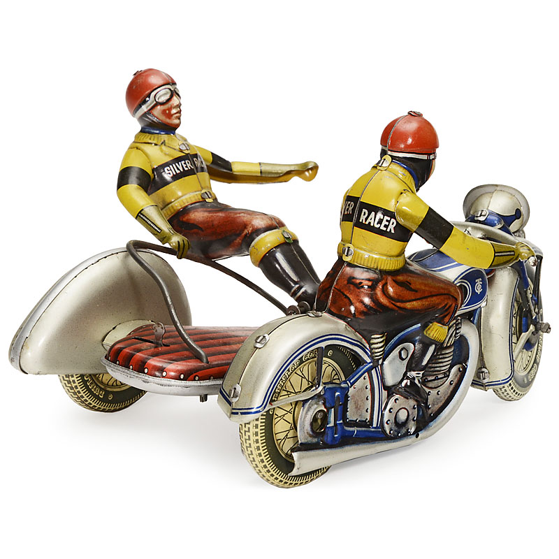 Nuremberg, lithographed tin, clockwork, working, circling, co-driver swings from side to side, with original box.