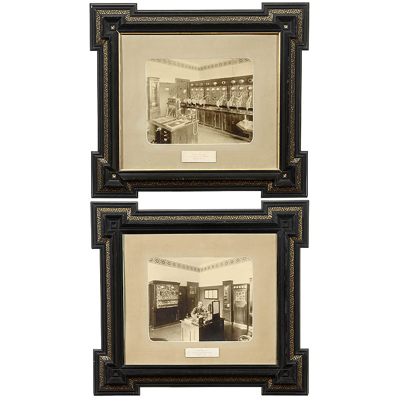 2 Framed Photographs of a Telephone Exchange Office, c. 1900