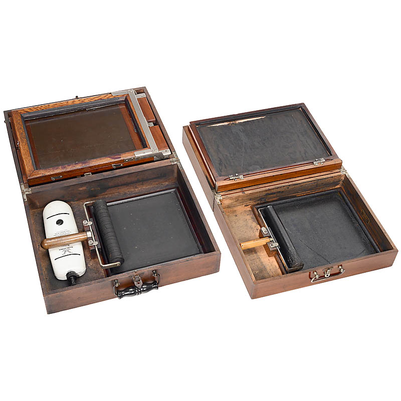 Based on Thomas A. Edison's patent of 1876. 1) Edison Mimeograph, made only by A.B. Dick Company, Chicago; with accessories and manual. – 2) Lion Menucator, no. 4 model, British. – And: 3) Lion Duplicator.