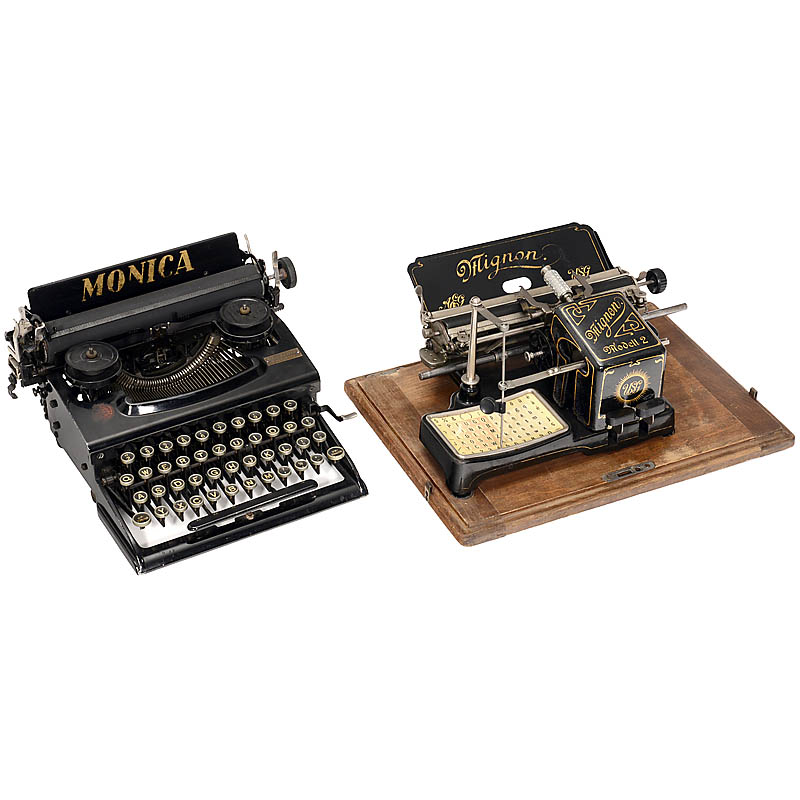 1) "Mignon Mod. 2", 1905. With tin cover. (2-/2) – And: 2) "Monica", 1927. Escapement faulty. (3/4)
