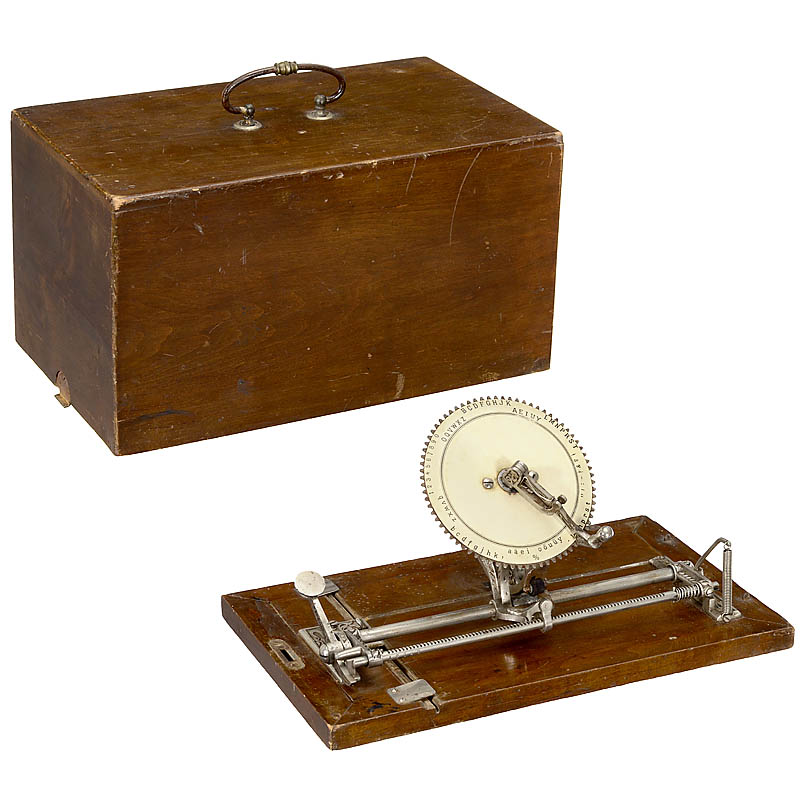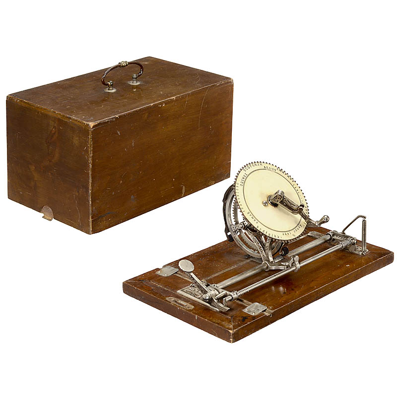 One of the most attractive typewriters ever built: "World Typewriter", no paper clip and outer scale for cipher writing. – An important collector's item and a most spectacular exhibition piece for any mayor collection!