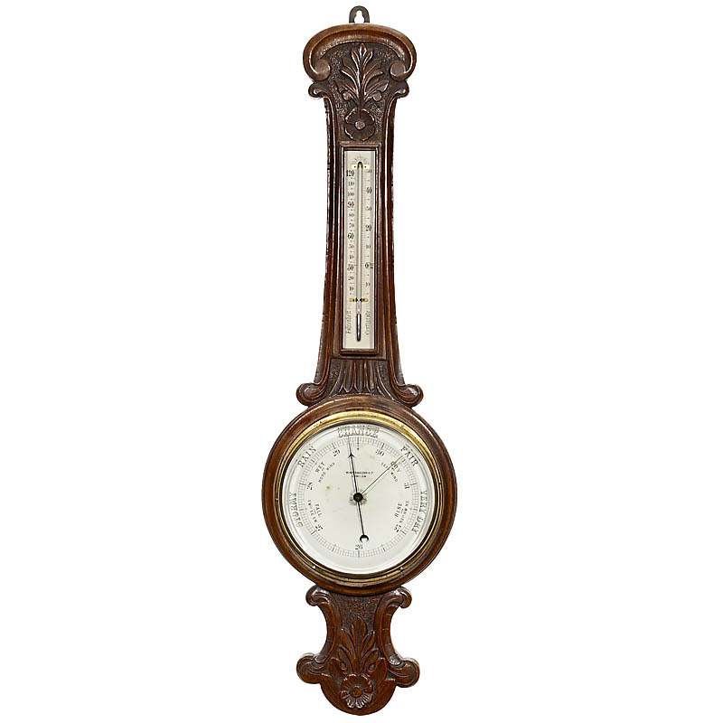 Aneroid Banjo Barometer with Thermometer, c. 1900