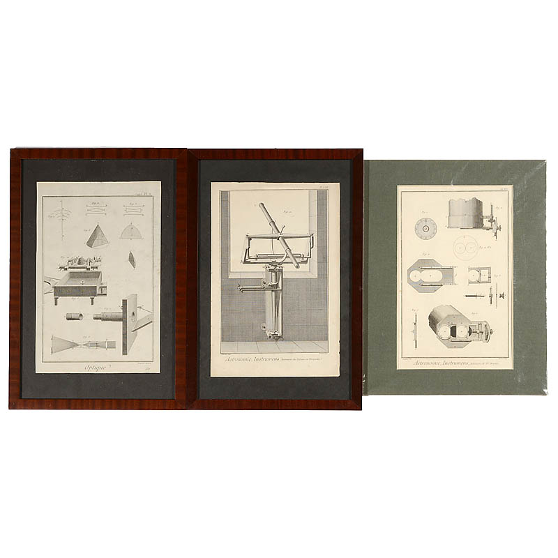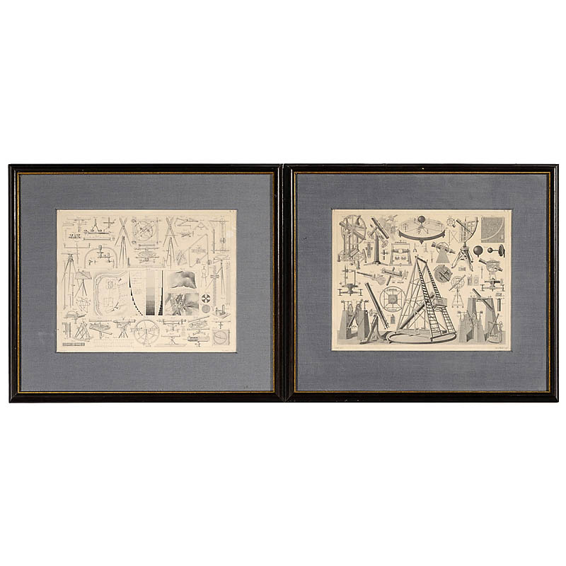 9 Engraved Book Plates showing Microscopy, Astronomy and Surveyi